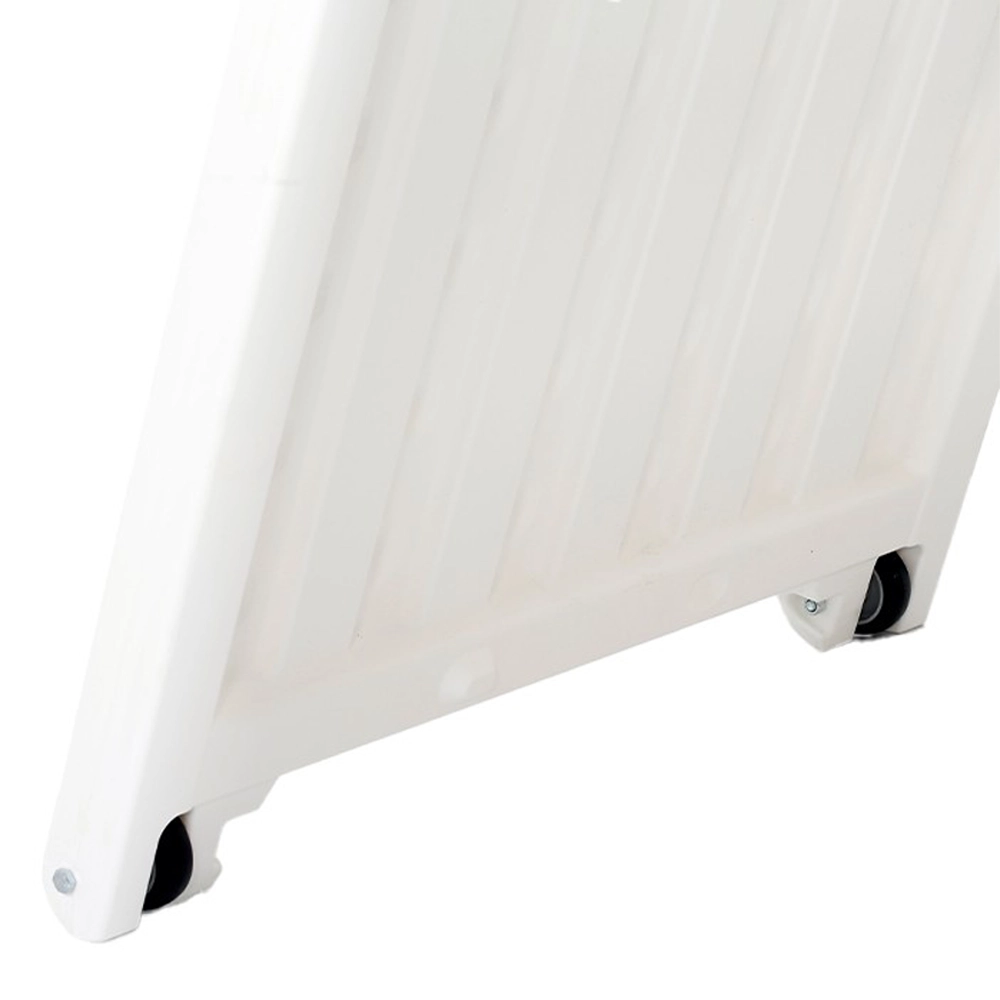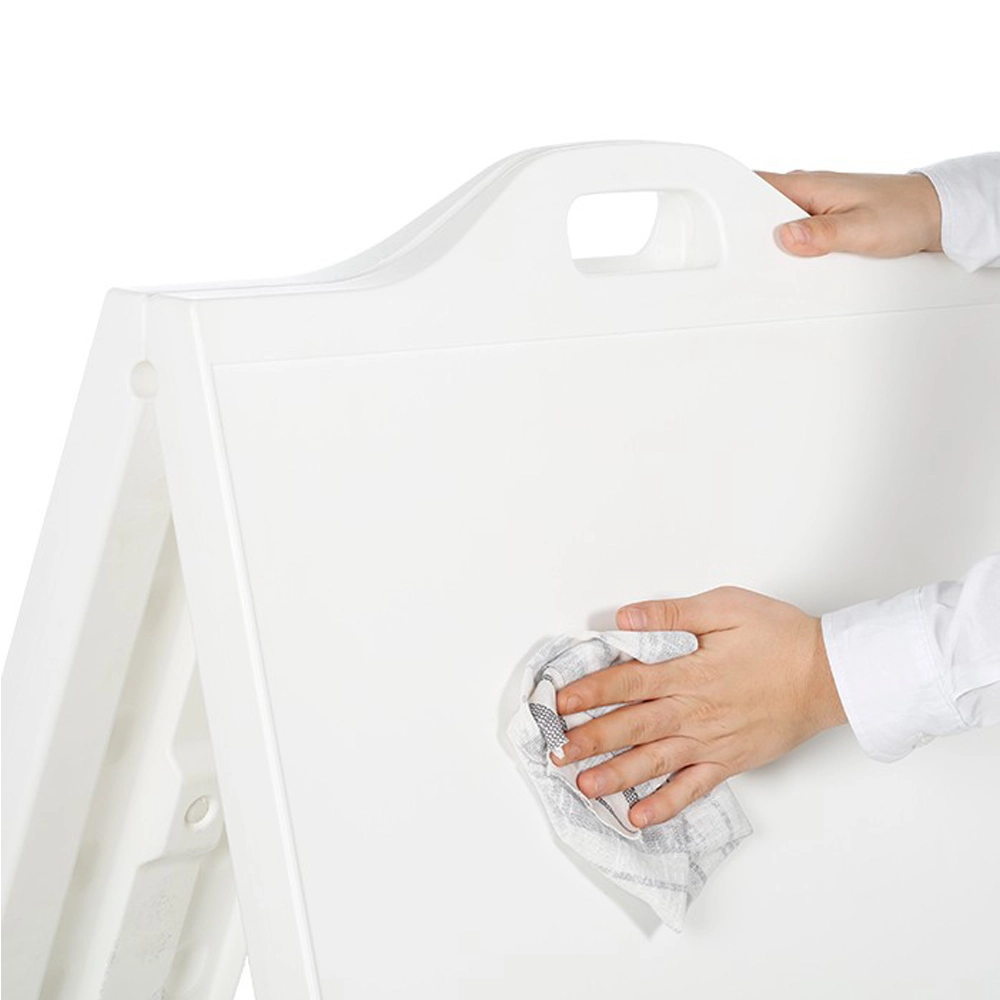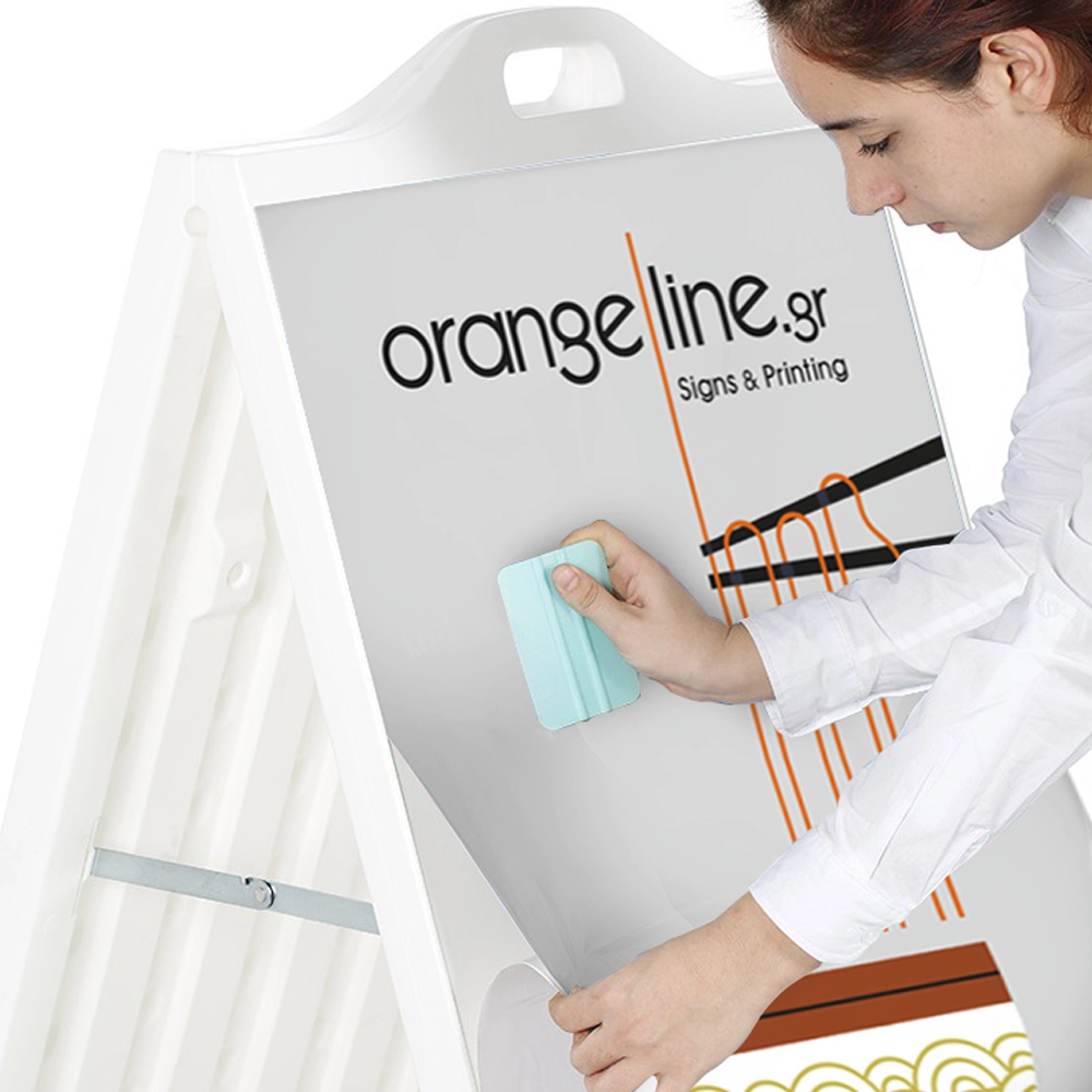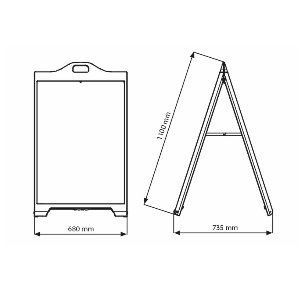 Το A-BOARD pvc STAND είναι κατασκευασμένο από πλαστικό HDPE* μεγάλης αντοχής, αρκετά βαρύ για εκτεταμένη χρήση και σε εξωτερικούς χώρους. Διπλής όψης, πτυσσόμενο, με χειρολαβή και ροδάκια για εύκολη μετακίνηση.