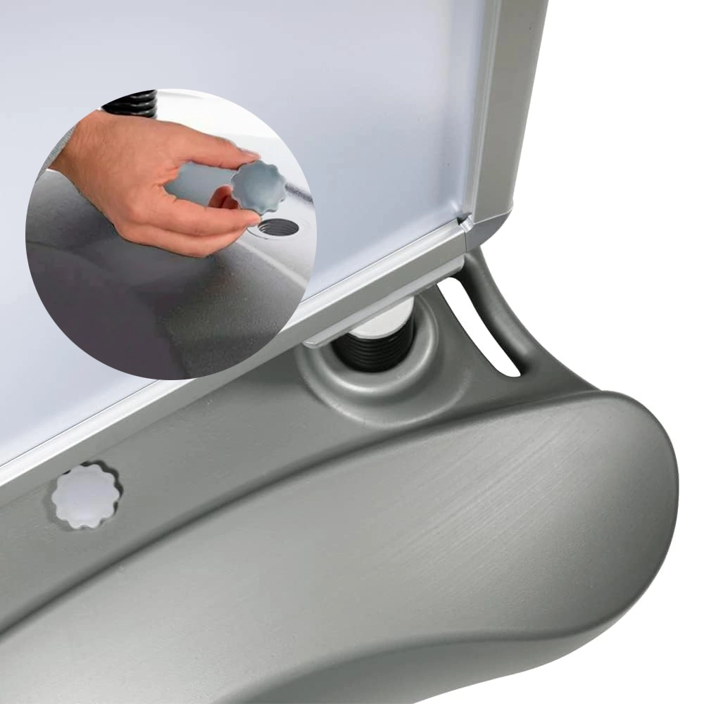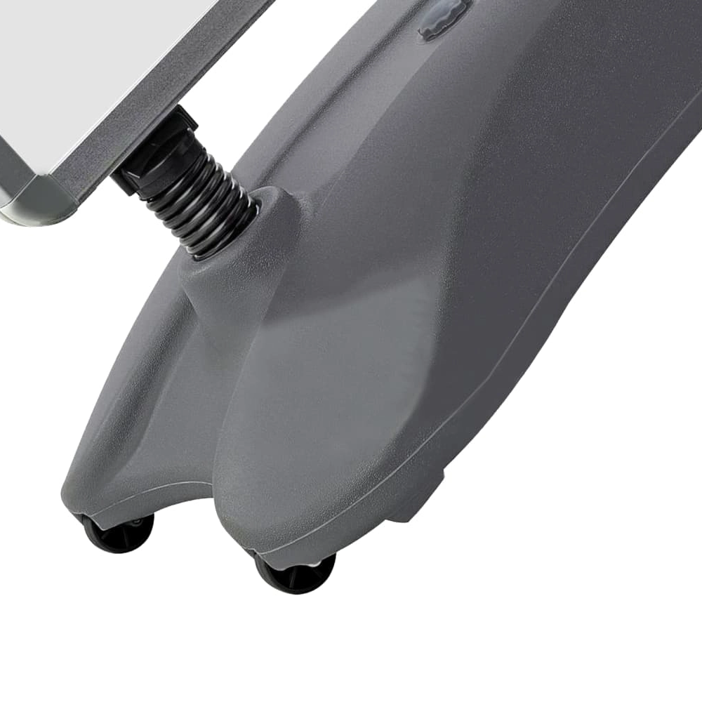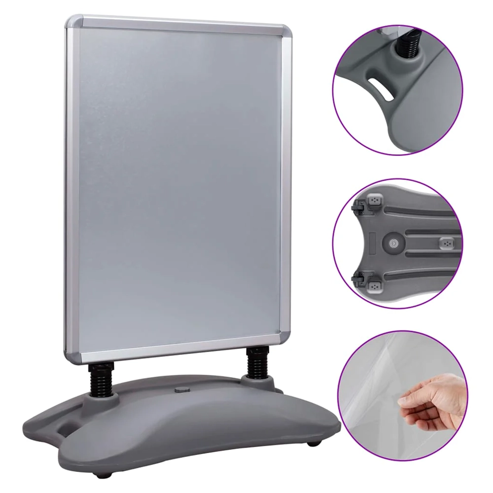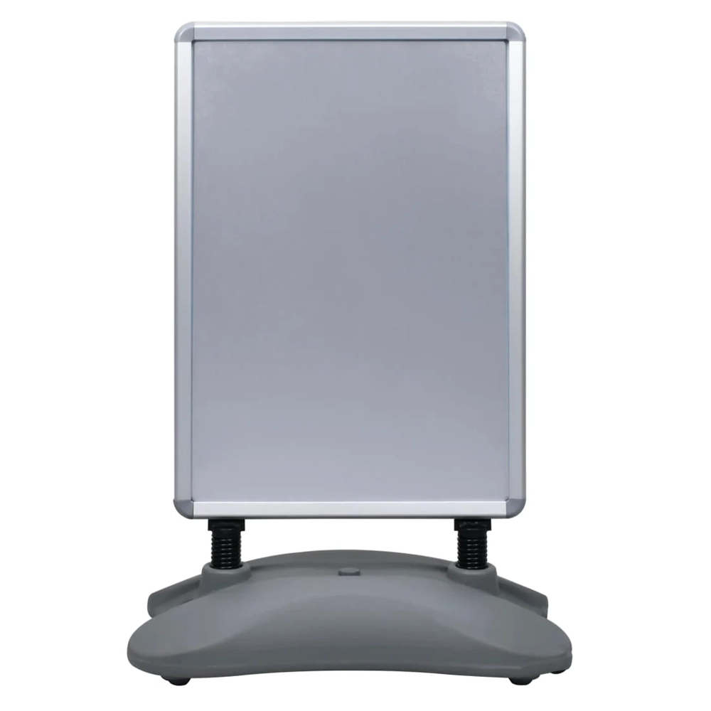 Το stand με ελατήρια είναι η καλύτερη επιλογή για εξωτερικό χώρο, κατασκευασμένο από στιβαρό αλουμίνιο, με δύο όψεις προβολή. Η βάση από πλαστικό βαρέως τύπου γεμίζει με νερό ή άμμο εξασφαλίζοντας επιπλέον βάρος και σταθερότητα διαθέτει ελατήρια για μέγιστη αντοχή στον αέρα. Είναι εύκολη στη μεταφορά χάρη στους τροχούς και τη λαβή της βάσης. Η διαφανής μεμβράνη από PVC με φίλτρο UV προστατεύει την εκτύπωση από το ηλιακό φως. Η κορνίζα του είναι τύπου snap frame (κλικ) που εξασφαλίζει την εύκολη αλλαγή της αφίσας. Η εκτύπωση γίνεται επάνω σε αδιάβροχο μουσαμά και τυπώνεται σε υψηλής ανάλυσης εκτυπωτικό μηχάνημα.