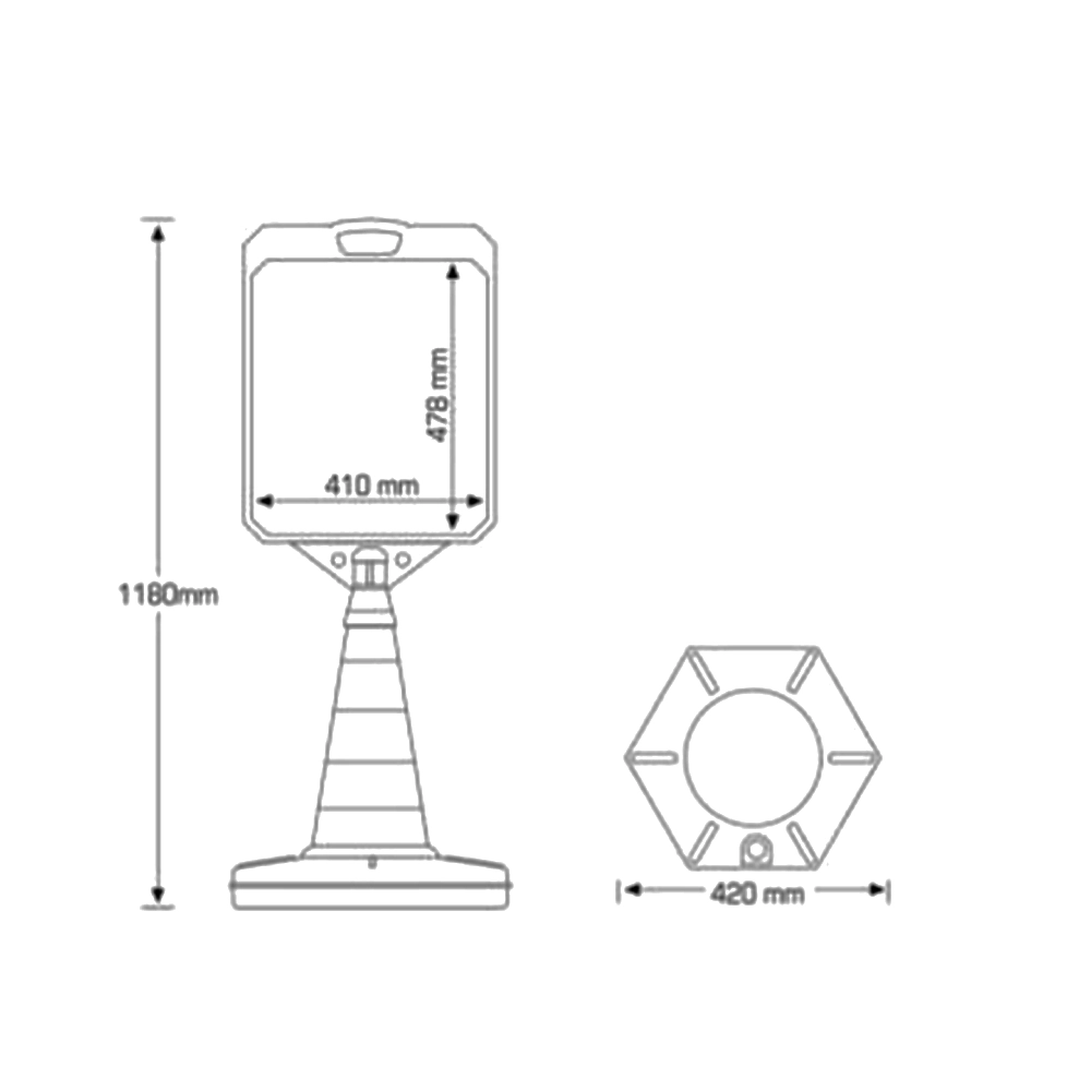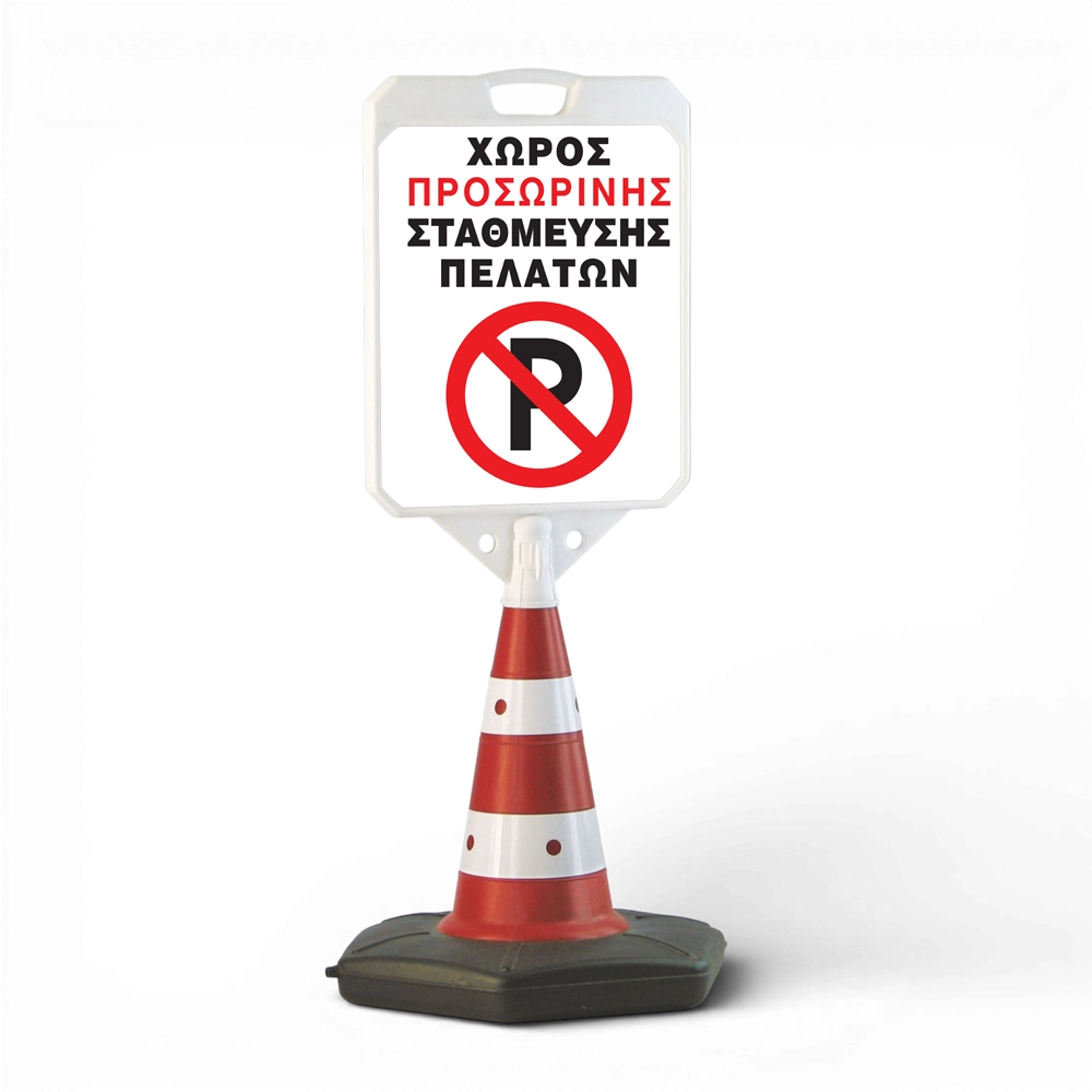 Το traffic sign χρησιμοποιείται για την προβολή μηνυμάτων, συμπεριλαμβανομένων μηνυμάτων προειδοποίησης και ασφάλειας, έχει εντυπωσιακά κόκκινα και λευκά χρώματα εξασφαλίζοντας την προσοχή με μέγιστη απήχηση. Είναι κατασκευασμένο από πολυστυρένιο ανθεκτικό σε κρούσεις και καιρικές συνθήκες. Η βάση μπορεί να γεμίσει με νερό ή άμμο για επιπλέον σταθερότητα. Διαθέτει πλαίσιο για διπλής όψης προβολή και λαβή για την μετακίνηση του. Η εκτύπωση γίνεται επάνω σε αυτοκόλλητο vinyl, πλαστικοποιημένο για να προστατεύεται από ζημιές και την υπεριώδη ακτινοβολία.